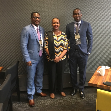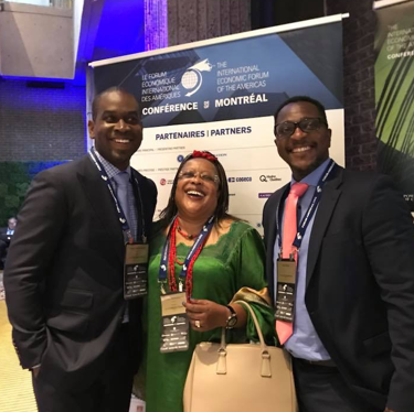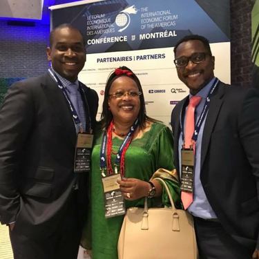 From left to right, SsahiPath Co-Founder and Chief Executive Officer, Jacques NdoutouMve, MAFUBO Founder and President, Dr. Hon Monique Mujawamarya, and SsahiPath President and Chief Technology Officer Dr. Erick Tidiane, photographed in Montreal at the 2018 International Economic Forum of the Americas.